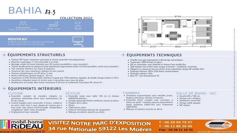 En plus de cette option, le convertible permet au bahia 87.3 de recevoir jusqu’à 8 personnes... Une belle capacité pour ce modèle à l’implantation relativement compacte
