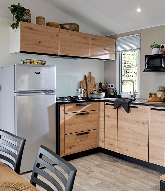 est un modèle qui allie le confort d’un mobil-home de type "résidentiel" à la praticité et au design "vacances", caractéristiques des modèles locatifs. Dans le SANTAFÉ duo, un véritable coup de coeur s’opère souvent sur la pièce de vie ultra lumineuse que propose ce modèle.